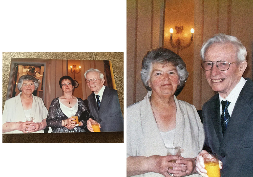 Restoring both photographs and then making a montage so the couple are in the same photograph, then colourising