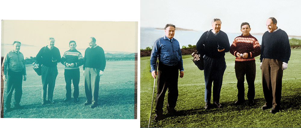 “My uncle now 91 was Captain of St Mary’s Golf Club on St Mary’s and used to play with Harold Wilson and other members where he could have a round of golf without being followed by the press and simply trusted all of the members not to gossip. He knew all of the members and any strange faces he was quite wary of although apparently always very polite. The photo was taken just outside the club and the beautiful uninhabited Island of Samson is in the background . There are beautiful views all over the course. By the way my uncle is still the best player and at the age of 91 only 3 months ago got another “hole in one” So it’s great to have this photo as it most likely appeared years ago. The photo is fabulous, I am sure my Uncle will be delighted with it”